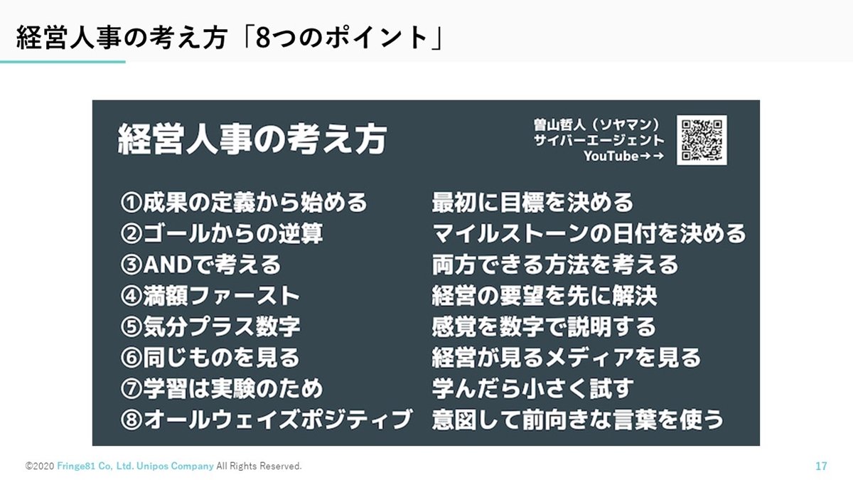 曽山氏が挙げる経営人事のポイントは次の8つです。