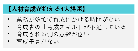 しかし人材育成には大きな課題があり、課題ごとに対策を打つ必要があります。
