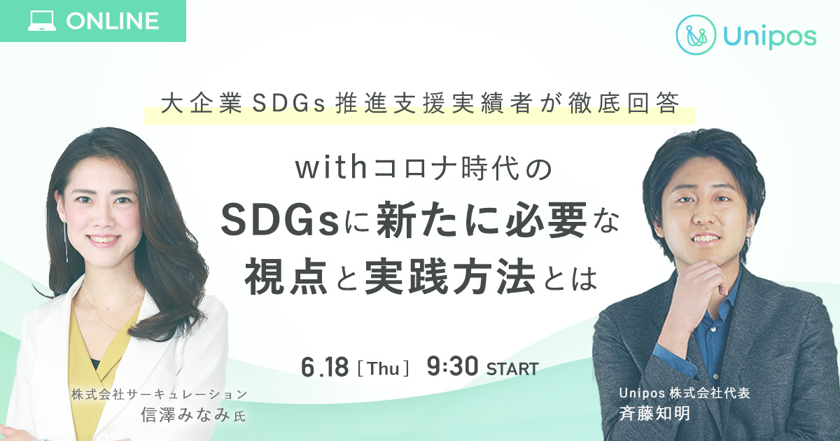 コロナ危機を乗り越え、真にサスティナブルな経営を目指すための考え方と取り組みについて、株式会社サーキュレーション ソーシャルデベロップメント推進室代表・信澤みなみ氏をゲストをお迎えし、Unipos株式会社・代表取締役社長・斉藤知明との対談を2020年6月18日開催のUniposウェビナーにて実施しました。