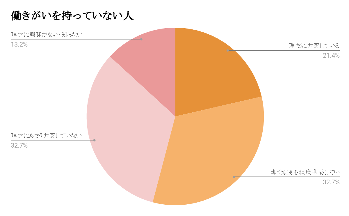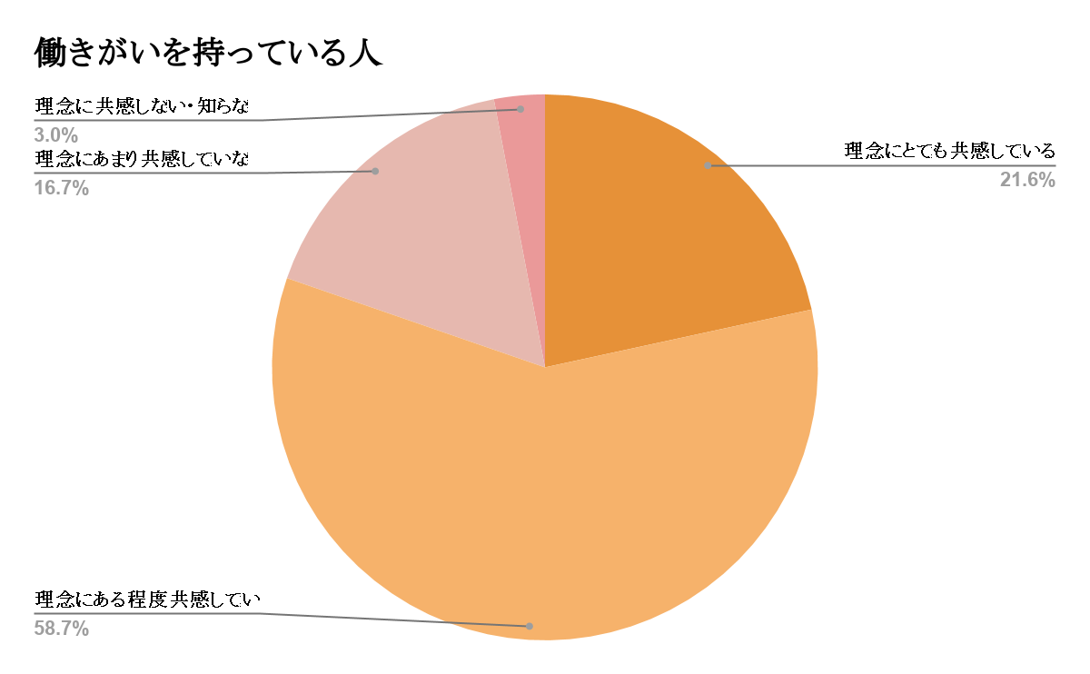株式会社ノースサンドが2019年6月に実施した「経営理念×やりがいに関する調査」では、働きがいがないと感じている人より働きがいを持っている人のほうが企業の理念に共感していることが分かりました。