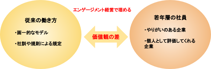 今まで企業が行ってきた企業運営と、新たな時代にフィットする企業経営の価値観の差を埋める方法としても、社員と企業の双方の信頼関係をベースとするエンゲージメント経営が注目されています。