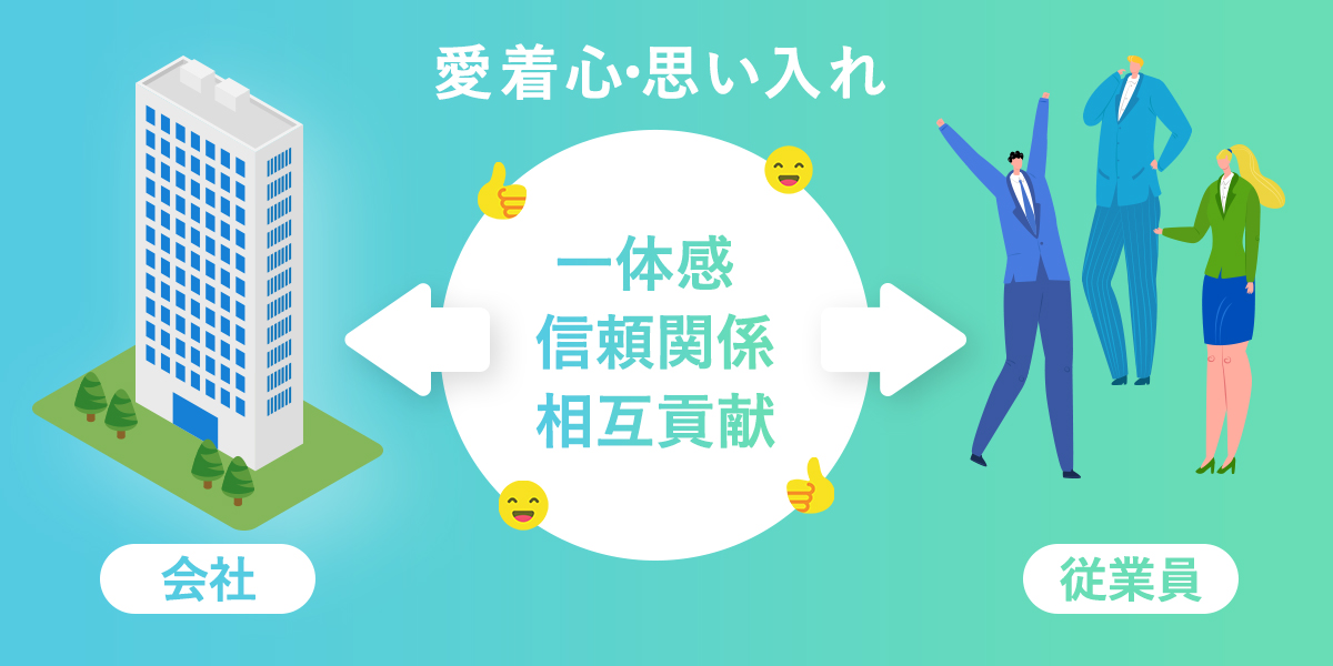 さらに、最近では「会社と従業員の間の一体感や信頼関係」「会社と従業員が互いに貢献し合う関係」のような、会社側からのアプローチも含めた概念とも言われています。
