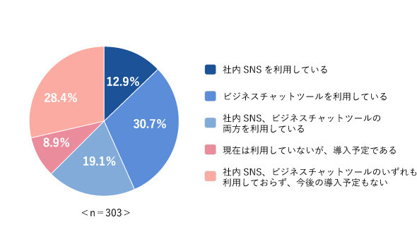 ※上記の調査では「社内SNS」と「ビジネスチャット」が分けられています。ビジネスチャットと社内SNSは機能・効果に共通する部分が多いため、どちらも「社内SNS」として扱う場合もあります。本記事では、ビジネスチャットも社内SNSとして扱っています。