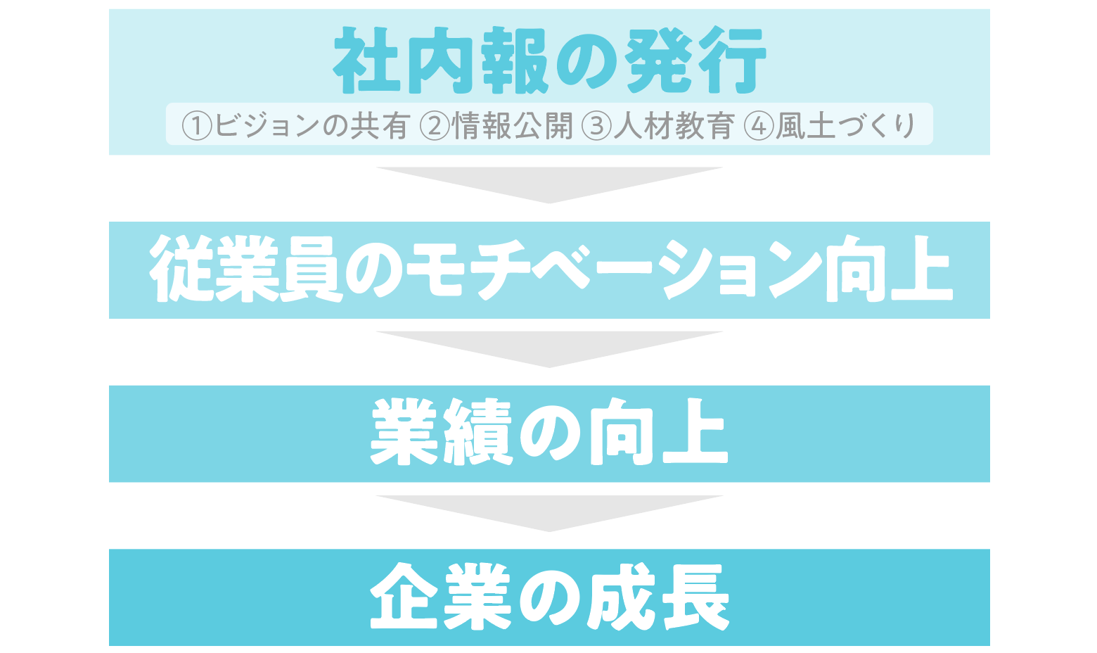 上図の通り、社内報は企業の成長へ結び付いていることを、改めて認識しておきましょう。