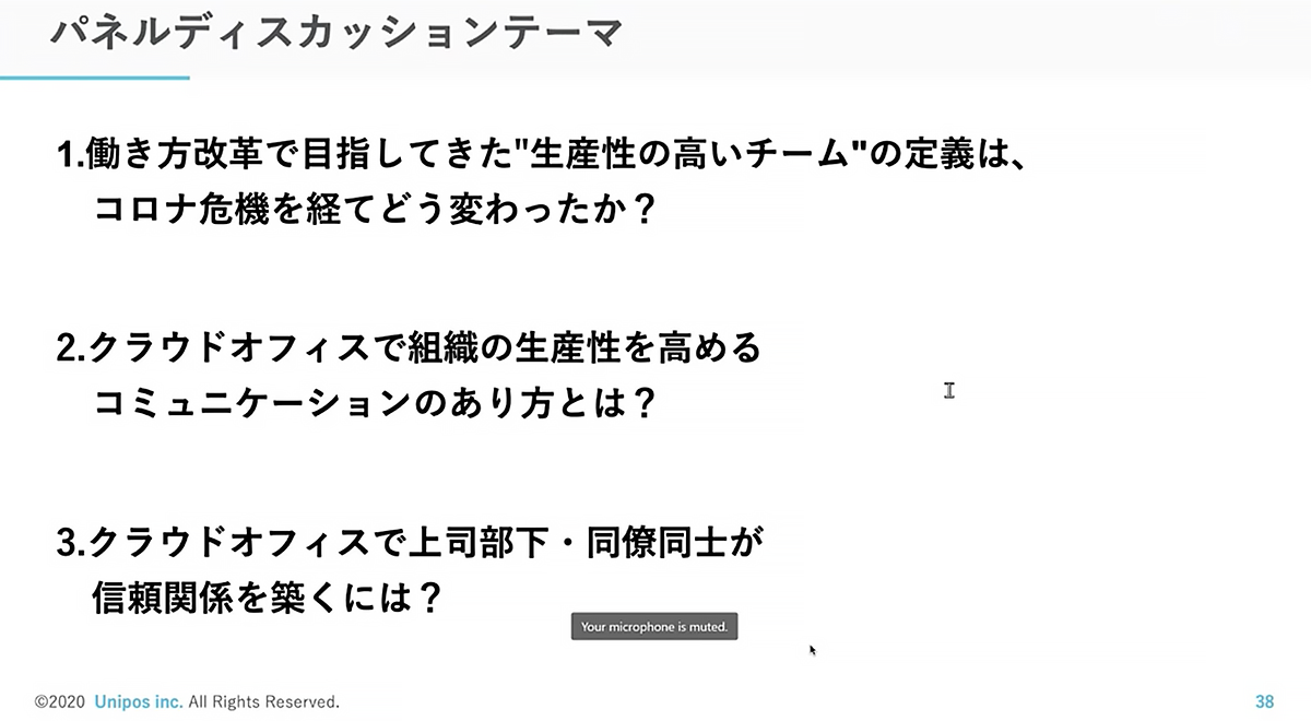 最初のテーマは「生産性の高いチームの定義はコロナ危機を経てどう変わったか」。