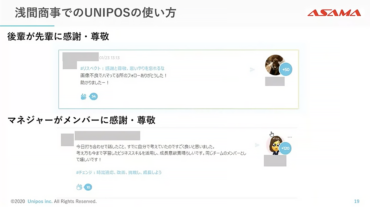 浅間商事では2019年10月からUniposも導入しています。その背景にあったのは新入社員がなかなか定着しない状況と、部門間における不和だったといいます。