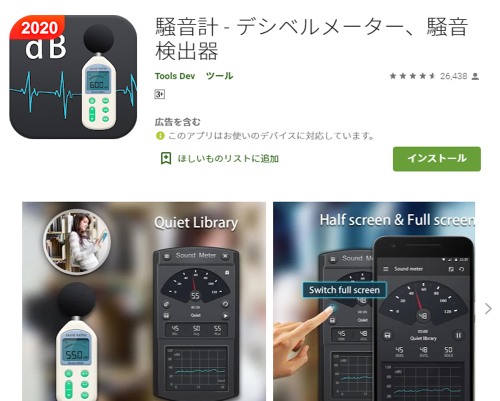 公式サイト:https://play.google.com/store/apps/details?id=app.tools.soundmeter.decibel.noisedetector&hl=ja