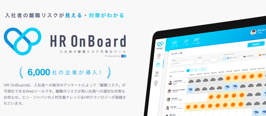 4500社もの企業が導入しており、エン・ジャパンの人材定着ナレッジとHRテクノロジーが凝縮されています。