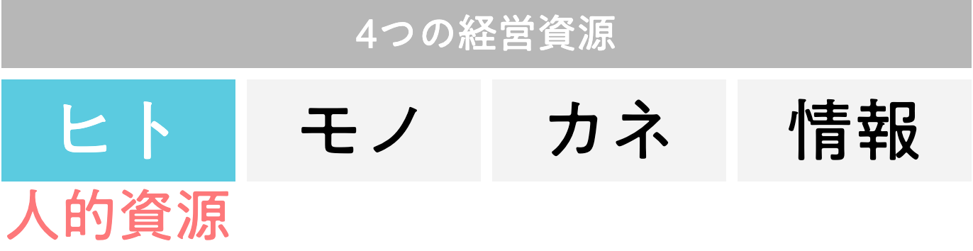 人事制度の目的を一言でいえば「人的資源を最大限に活かすこと」です。人的資源とは、経営資源の「ヒト・モノ・カネ・情報」のうち、「ヒト」を指す言葉です。