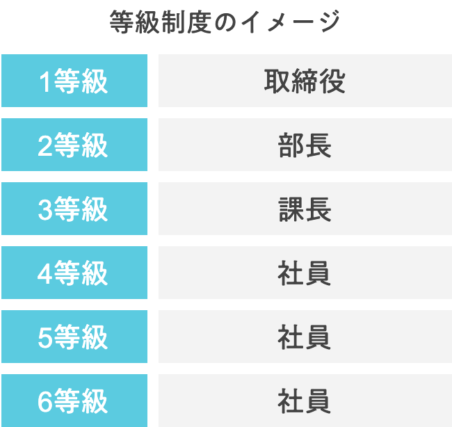 1つめの柱「等級制度」は、能力のレベルや職務内容に従って定められた「等級」に基づいて、従業員の社内での位置付けや給与を決定する制度のことです。