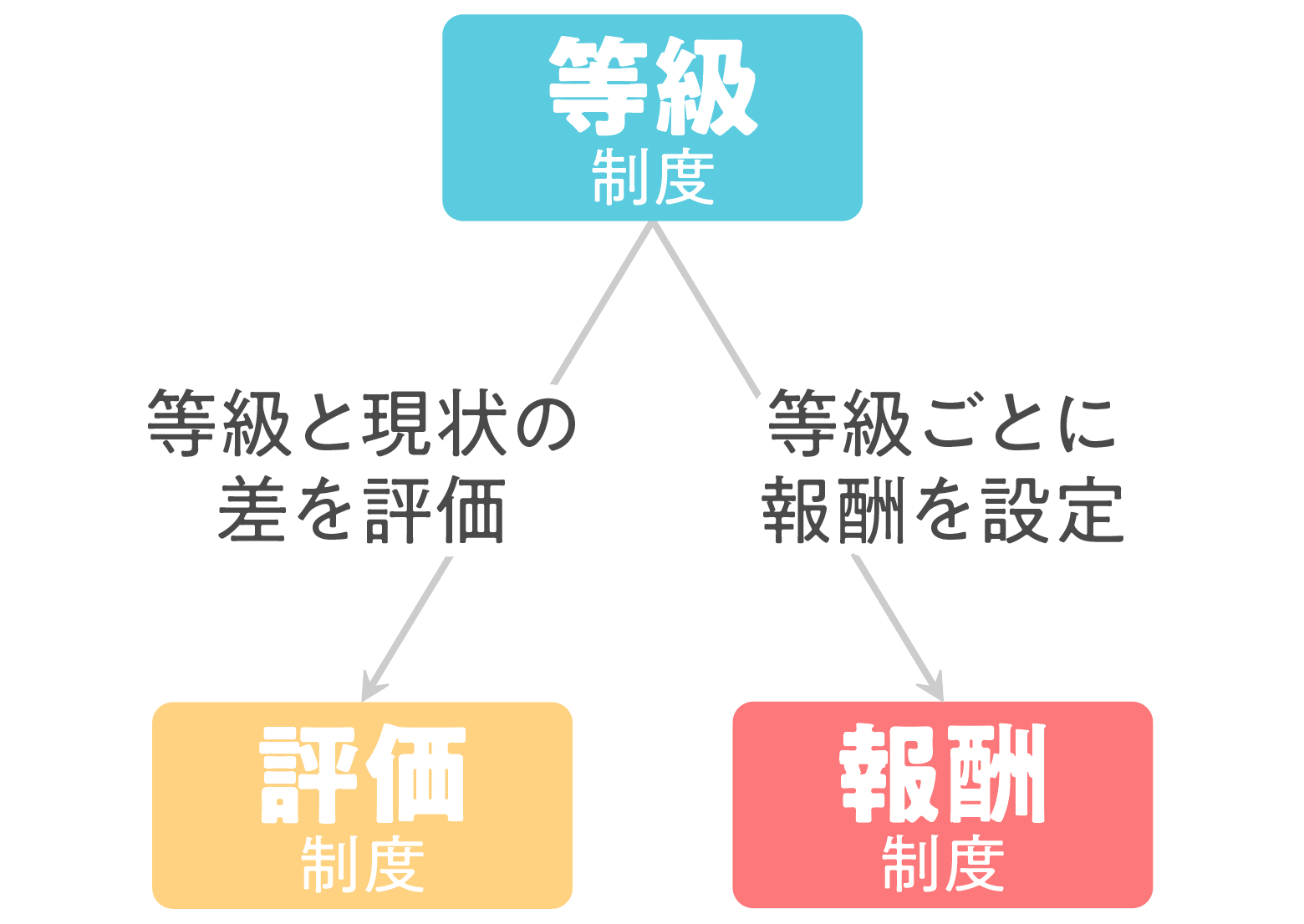 人事制度の3要素(等級制度・評価制度・報酬制度)の中でも、等級制度は「人事制度の骨子」といえます。最初に等級制度を設計し、そこから派生して評価制度・報酬制度を設計していくとスムーズです。
