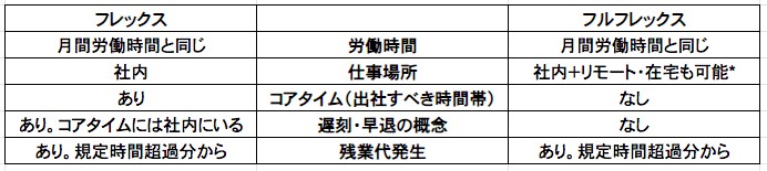 「会社で定められた月間労働時間の基準を満たせば、その時間内で出社・退社時間などを自分の都合で自由に決められる」