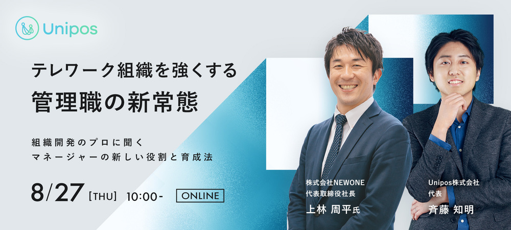今回、2020年8月27日にUniposウェビナー「テレワーク組織を強くする管理職の新常態~組織開発のプロに聞くマネージャーの新しい役割と育成法~」を開催。